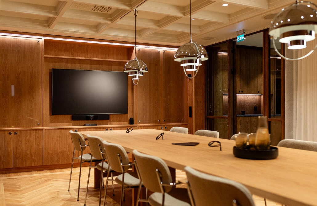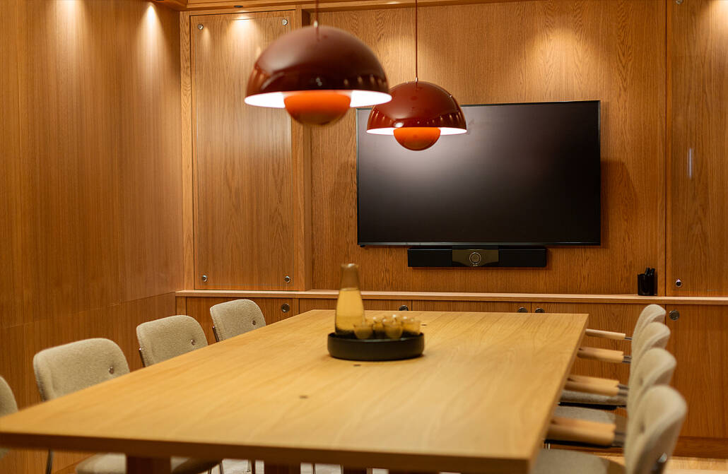 Wi-Fi, TV-skärm, modern och användarvänlig videokonferensutrustning för PC och Mac. Samt whiteboard och anteckningsmaterial.